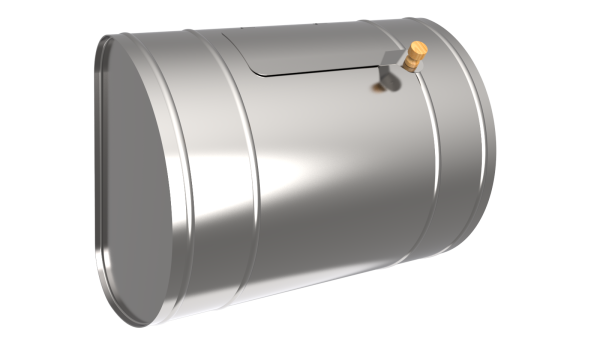 Бак предназначен для нагрева воды, путем естественной циркуляции, через теплообменник. Соединяется с теплообменником с помощью труб, что позволяет хранить воду в смежных помещениях. Для крепления труб снизу расположено 3 штуцера ¾. Сверху бака заливное отверстие с крышкой. Бак крепиться на стену с помощью креплений, расположенных в верхней части задней стенки бака. Изготавливается бак объемом 50л,60л,70л, из стали AISI 430/0,5мм ВА-PE, крышки из AISI 439/0,8мм