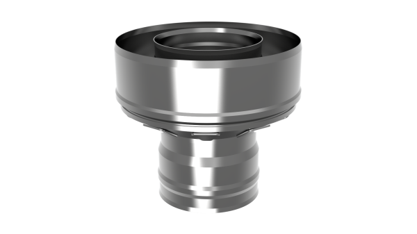 Элемент дымового канала предназначен для перехода с одностенного на двустенный канал, а так же закрывает и предохраняет от высыпания теплоизоляцию у двустенного канала