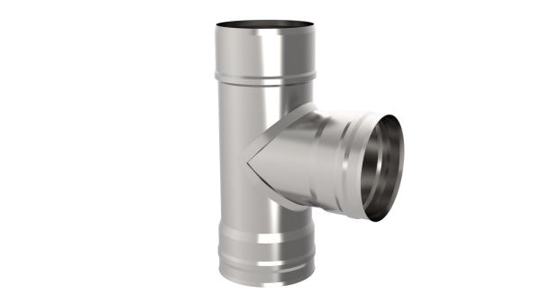 Элемент одностенного дымового канала, предназначен для соединения двух каналов дымохода, может используется, в сочетании с заглушками, как ревизия