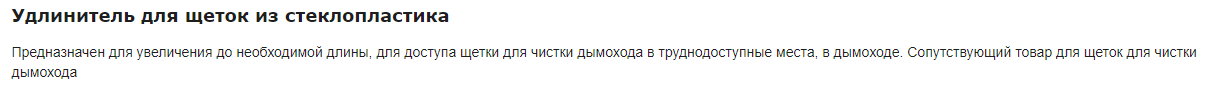 Предназначен для увеличения до необходимой длины, для доступа щетки для чистки дымохода в труднодоступные места, в дымоходе. Сопутствующий товар для щеток для чистки дымохода
