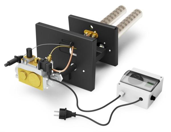 Газовая горелка с энергозависимым устройством автоматического регулирования подачи газа и пультом управления (ПУ) с питанием от электросети (220В) тепловой мощностью 26 кВт