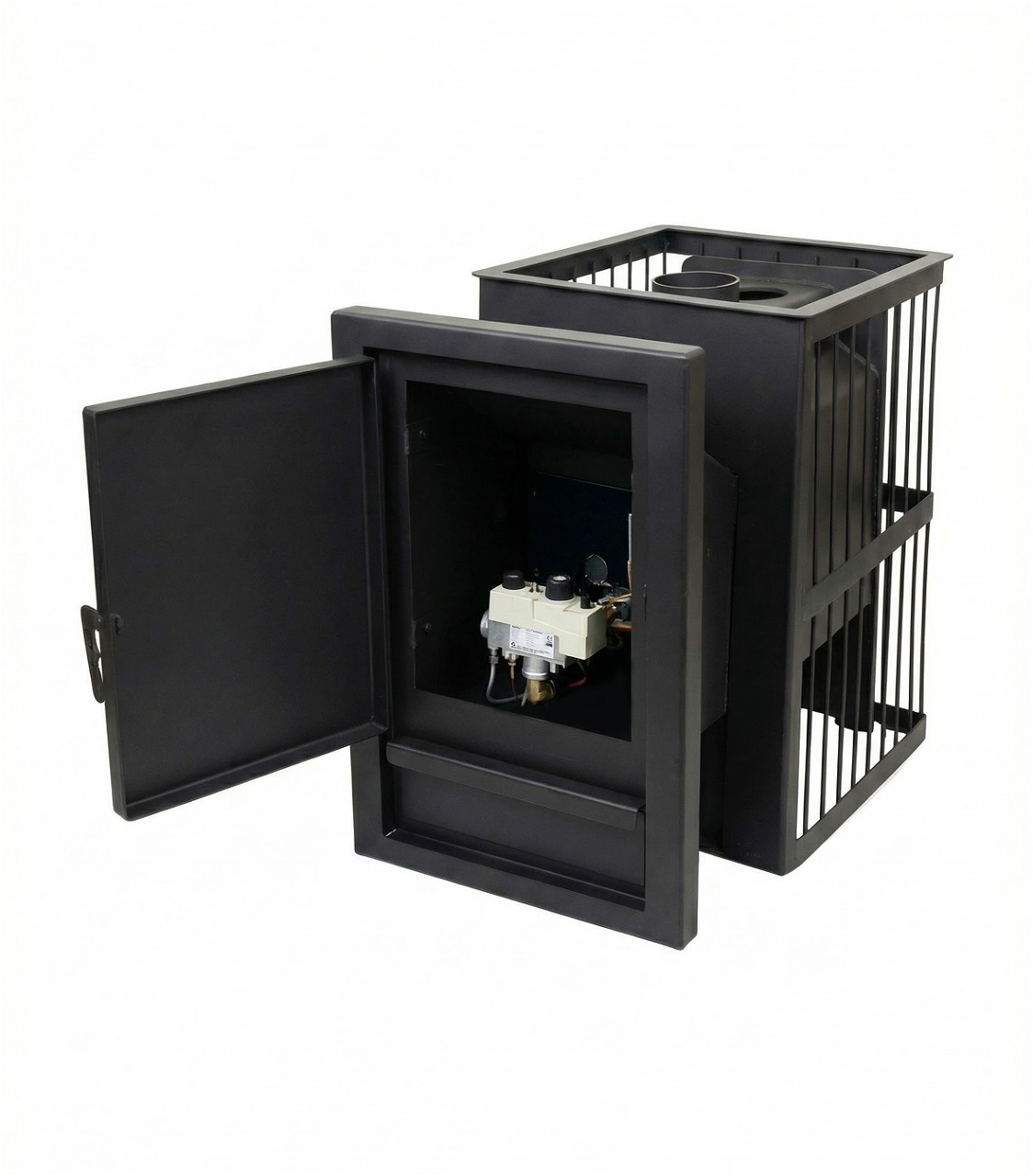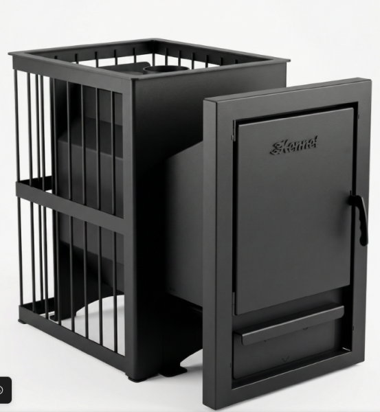 Банная печь с открытой каменкой расчитана на объем парной до 15м3.