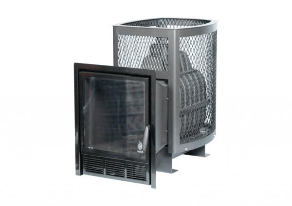 Печь банная НМК Сибирь - 20 чугунная Про с панорамной дверцой сетка